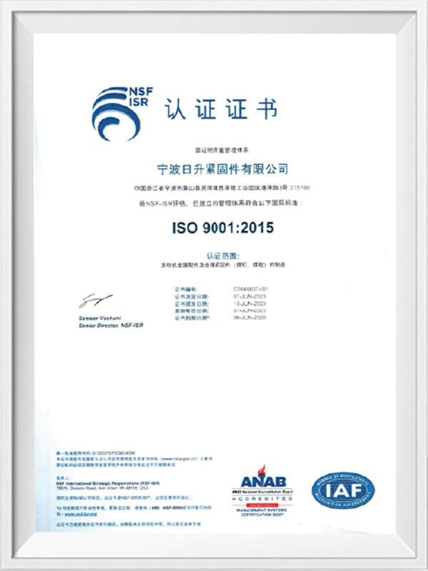 Ningbo Risheng Fastener Co., Ltd. je proizvođač veteranskog pričvršćivača osnovan 1984. godine, koji može proizvesti razne vrste vijaka za samostalno uslijed, strojne vijke, kombinirane vijke, vijke za trokut, vijke od nehrđajućeg čelika, šesterokutne vijke, vijke protiv krađe i nestandardne učvršćivače prema GB, JS ASI, DIN, i druge standarde. U skladu s europskim potrebama za okolišma.